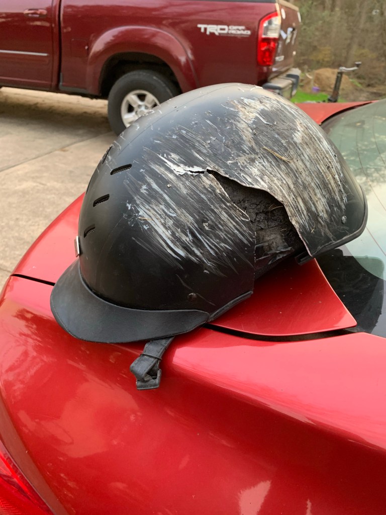 Sunday? It was windy and ugly and I rode inside because, why not? Ride started perfectly with a quiet horse. We jumped some fences as part of our flat work (I like to incorporate some crossrails or tiny jumps into flat work just to spice things up and all was good. Then, later, we jumped a small jump on the diagonal (we’re not jumping much, just a handful of 18″ fences that we usually trot over and then 2-3 2’+ fences that we usually also trot and maybe canter 1-2 18″ fences) and things went… array? You see, he landed on the wrong lead, no problem. Except, he landed, balanced, and when I unintentionally touched my spur to his side, someone decided to toss in a full change. Then, he did it again the next time we landed without any accidental cues. Then, he decided he could toss his legs all over the place because he’s awesome like that… Not that his legs go anywhere because he’s not athletic, but….