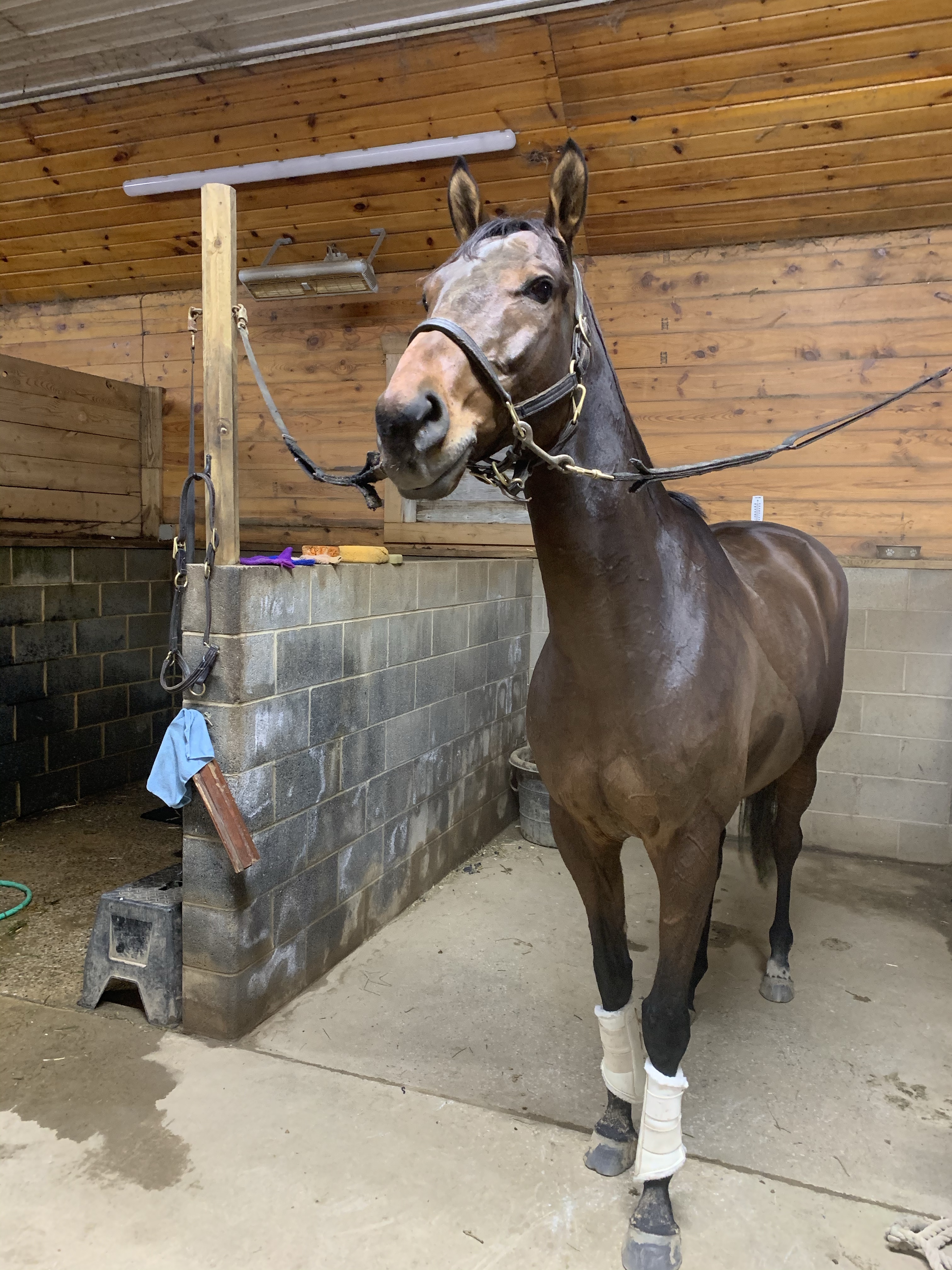 Saturday? The outdoor was a bit mucky from rain, but despite that (and a lunging horse at the start of the ride), Nay was a gem. I mean, he is a wild thoroughbred as all videos will show (my husband has retired again so enjoy video until he un-retires in 2-3 months). But, completely, utterly perfect thoroughbred. Showing shades of growing out of his green been status.